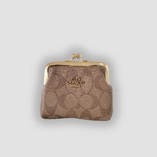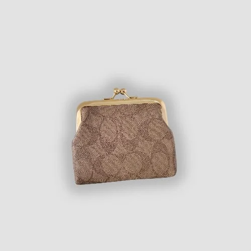 Monedero coach de imitacion, de piel sintetica color beige con estampado de la marca.