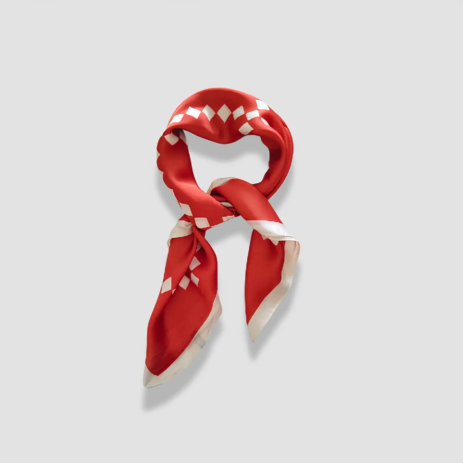 Material tipo seda en tono rojizo con blanco. Medida aproximada de 70cm x 70cm